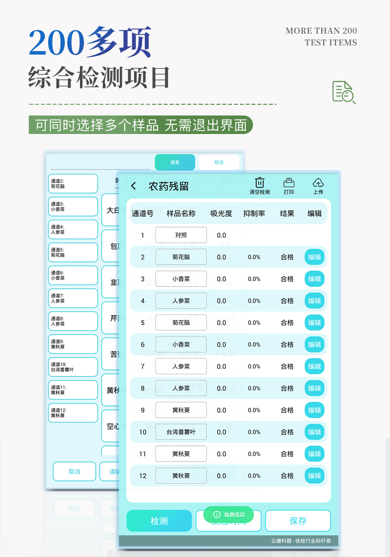8、儀器具有品類多種類樣品菜單庫,可靈活選擇檢測樣品,不同的檢測通道可同時檢測不同的樣品項目。