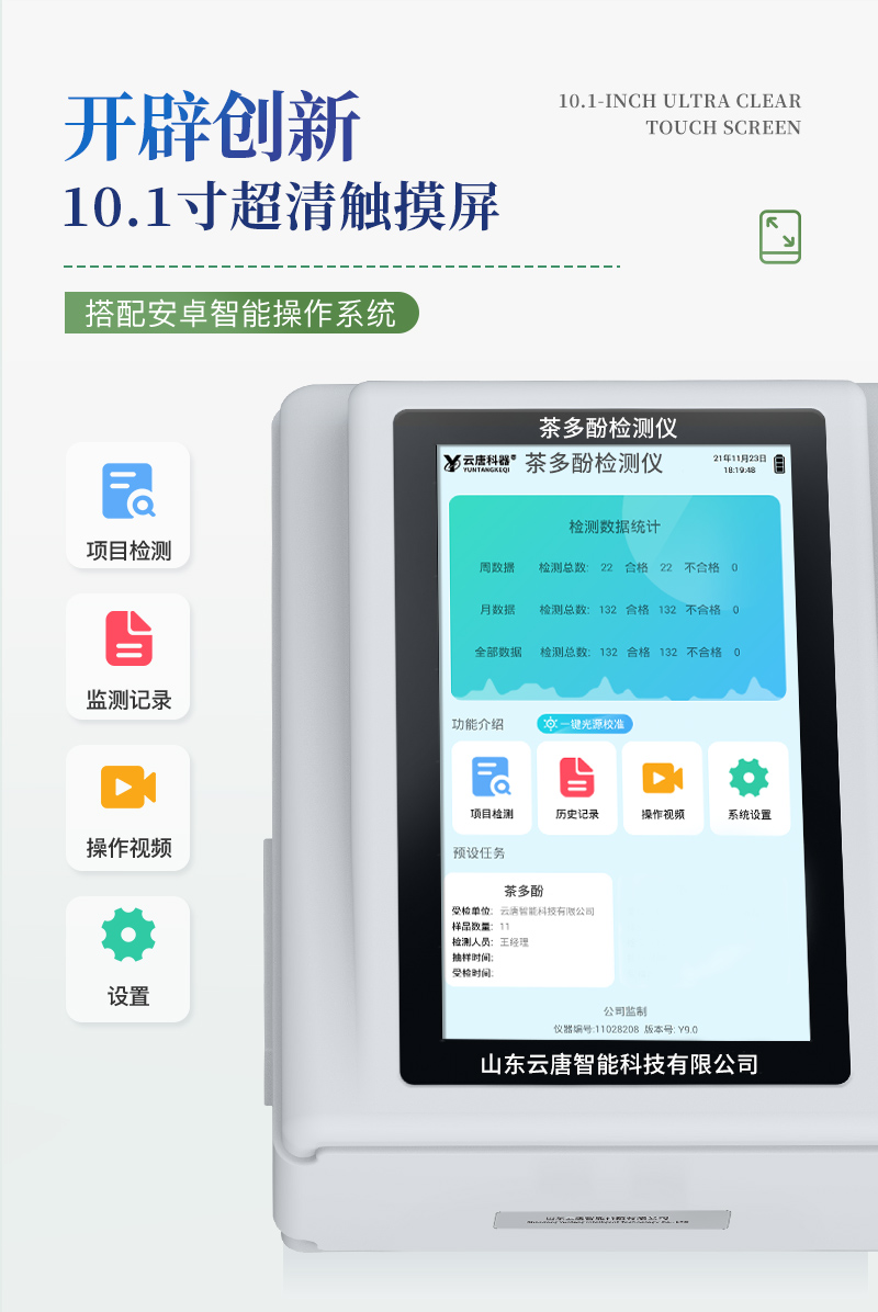 YT-F12茶多酚檢測儀可快速定量檢測各類茶飲料、乳飲、果蔬、糧食制品、肉制品、食用油脂等中茶多酚含量。茶多酚檢測儀可以廣泛應用于產品質量監督檢驗、工商管理、茶葉批發市場、茶葉0.深加工基地、飲料企業、超市、商場、各大食品安全監測系統等部門。