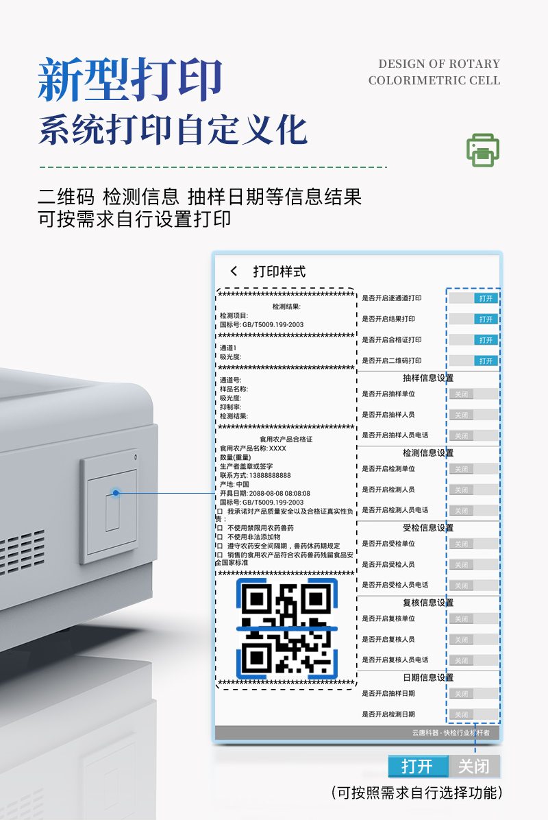 5、配備新一代嵌入式熱敏打印機,可選擇手動打印或者自動打印,檢測完成可自動打印檢測報告和二維碼。