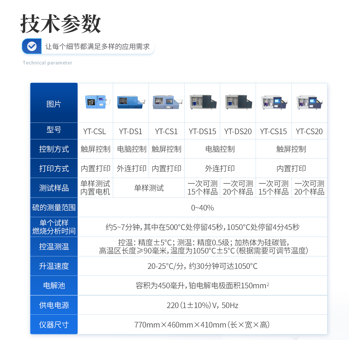 1.硫的測量范圍:0—40%. | 2.單個試樣燃燒分析時間:約5--7分鐘,其中在500℃處停留45秒,1050℃處停留4分45秒。 | 3.控溫:精度±5℃。測溫:精度0.5級;加熱體為硅碳管,高溫區長度≥90毫米,溫度為1050℃±5℃(根據需要可調節溫度) | 4、 密度:如下表規定: St,% 重復性St,ad,% 再現型St,d,%<1 1="" 0.05="" 0.10="">4 0.20 0.30 | 5.升溫速度:20--25℃/分,約30分鐘可達1050℃。 | 6.電解池:容積為450毫升,鉑電解電極面積150mm2 。 | 7.供電電源:220(1±10%)V,50Hz. | 8.儀器尺寸(mm) 長×寬×高(770×460×410) |