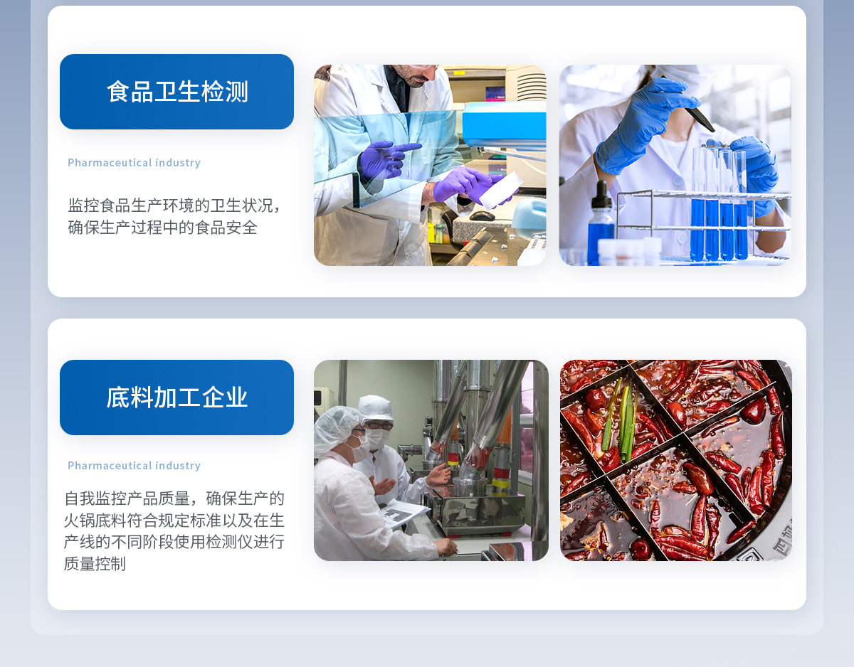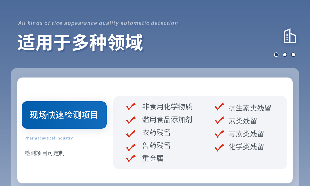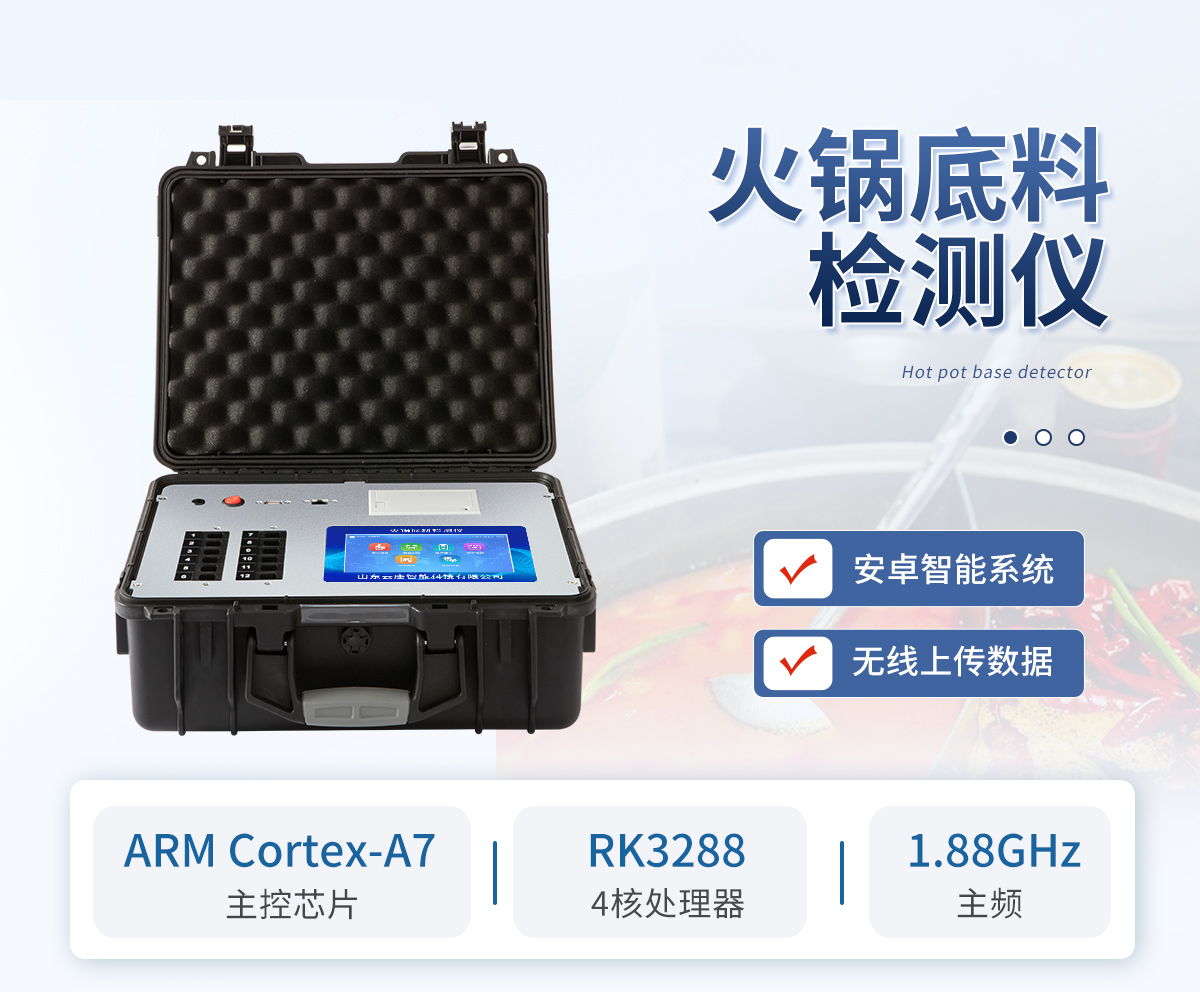 可現(xiàn)場(chǎng)快速檢測(cè)底料中非食用化學(xué)物質(zhì)、濫用食品添加劑、農(nóng)藥殘留、獸藥殘留、重金屬、抗生素類(lèi)殘留、激素類(lèi)殘留、毒素類(lèi)殘留、化學(xué)類(lèi)殘留等多項(xiàng)目的快速定性定量檢測(cè)。如底料中的山梨酸鉀、苯甲酸、甜蜜素、安賽蜜、黃曲霉B1等快速檢測(cè)。 該多功火鍋底料檢測(cè)儀為集成化食品安全快速檢測(cè)分析設(shè)備,廣泛應(yīng)用于食藥監(jiān)局、衛(wèi)生部門(mén)、底料加工、工商執(zhí)法等單位使用。