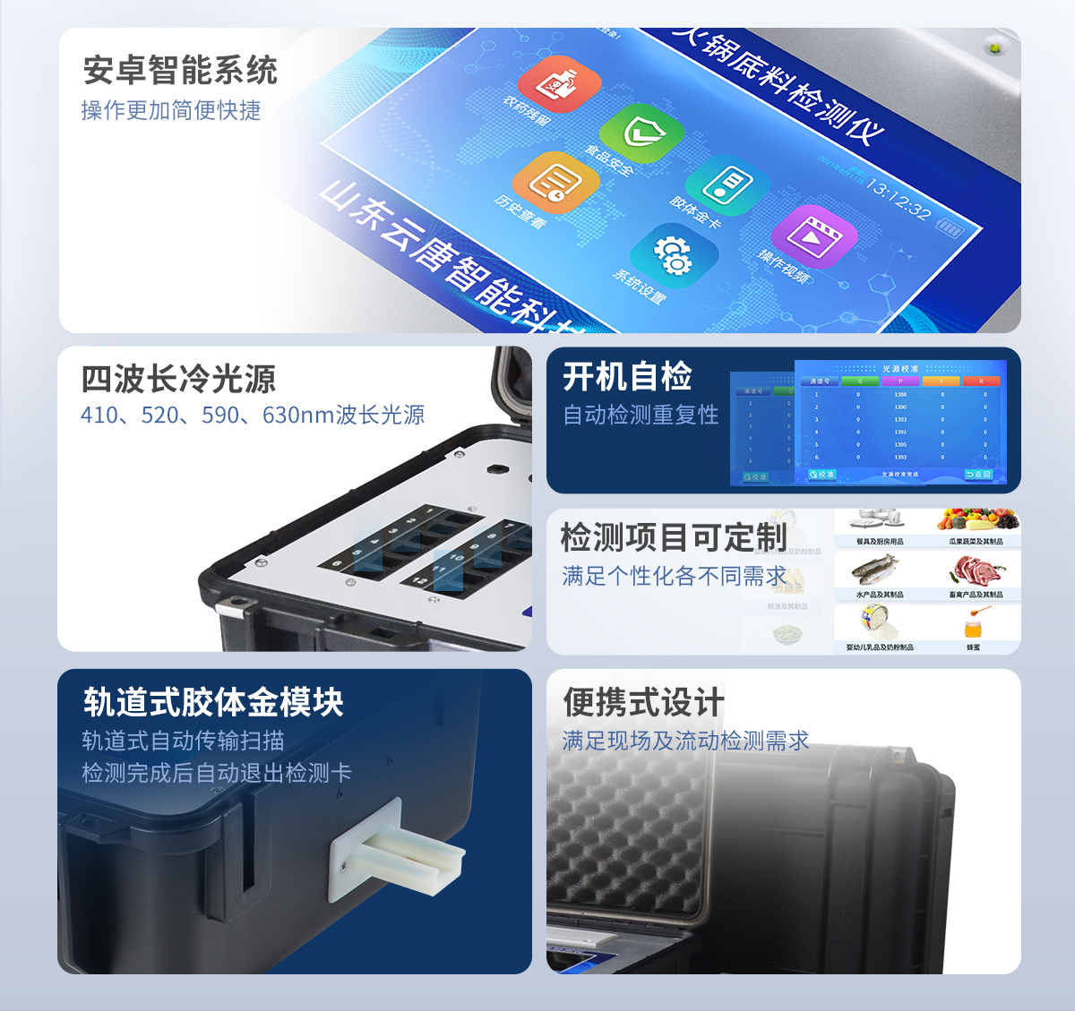 4、一體化主機(jī),包含食品安全檢測(cè)模塊、膠體金免疫層析檢測(cè)模塊。