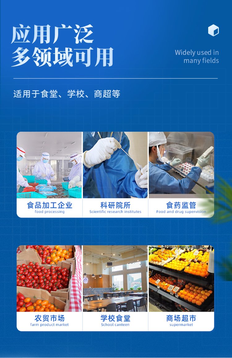 山東云唐智能科技有限公司生產的農藥殘留檢測儀廣泛應用于主要用于蔬菜、水果、茶葉、糧食、農副產品等食品中農藥殘留的快速檢測,依據國標GB/T5009.199-2003進行檢測,適用于果蔬茶生產基地以及農貿批發銷售市場現場檢測,餐館、學校、食堂、家庭果蔬加工前的安全速測等。