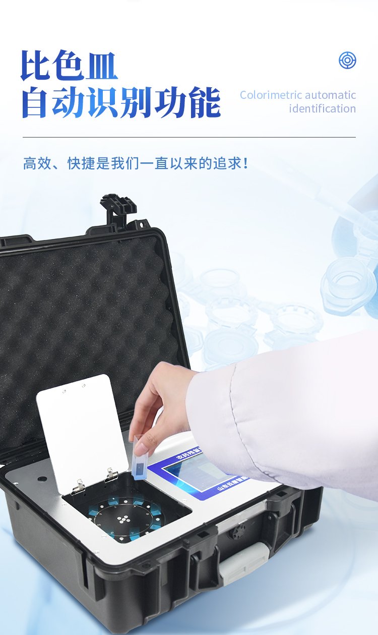 機器采用全新安卓智能系統,主控芯片采用 ARM Cortex-A7,RK3288/4核處理器,主頻1.88Ghz,運轉速度更快速,穩定性更強。 | 創新檢測模式: *儀器采用精密旋轉比色池設計,使用光源一致,可以解決各通道間由于光源誤差帶來的檢測結果誤差問題,檢測結果更加精準。 *儀器具有自動識別比色皿檢測功能,即:將樣品比色皿放入儀器后,點擊樣品檢測,儀器自動識別比色皿進行通道檢測。 | 供電方式:交直流兩用,直流 12V 供電,可連接車載電源,可配 6ah 大容量充電鋰電池,方便戶外流動測試。 | 顯示方式:7英寸液晶觸摸屏顯示,人性化中文操作界面,讀數直觀、簡單。 | 檢測通道:8個檢測通道,可以同時測試多個樣品,循環檢測,即放即檢,每個樣品由程序控制分別獨立工作,不會互相干擾。 | 高精光源系統: ①①儀器光源采用進口超高亮發光二極管,光源亮度可以自動調節與校準 ②智能恒流穩壓,光強自動校準,長時間連續工作光源無溫漂現象。 | 智能操作分析系統: ①儀器具有100多種蔬菜名稱菜單庫,分類管理,并可按需添加或刪除、編輯蔬菜名稱;可在同一檢測界面自動對應相關檢測通道一次性選擇1-24個樣品名稱,無需退出界面,節省操作時間。 ②內置新國家限量標準,與所測結果進行現場比對,并持續更新標準。 | 完善的配套硬件: ①采用串口5v打印機,可選擇手動打印或者自動打印,三分鐘出打印結果,打印格式為檢測人姓名、吸光度差值、檢測時間、檢測機構、樣品名稱及結果判定。 ②儀器具有無線上傳模塊,檢測結果可批量打印,批量上傳。 | 數據調用: ①儀器可存儲20萬條檢測結果, ②檢測結果為Excel表格,方便后期進行數據分析與匯總報告 ③儀器采用USB2.0接口設計,支持 U 盤存儲,方便數據的存貯和移動,并可隨時與計算機直接相連,實現數據查詢、瀏覽、分析、統計、打印等。 | 后期產品固件可升級。 | 安全證書,放心保障:儀器具有中國計量科學研究院校準證書,權威認證,使用放心。 |