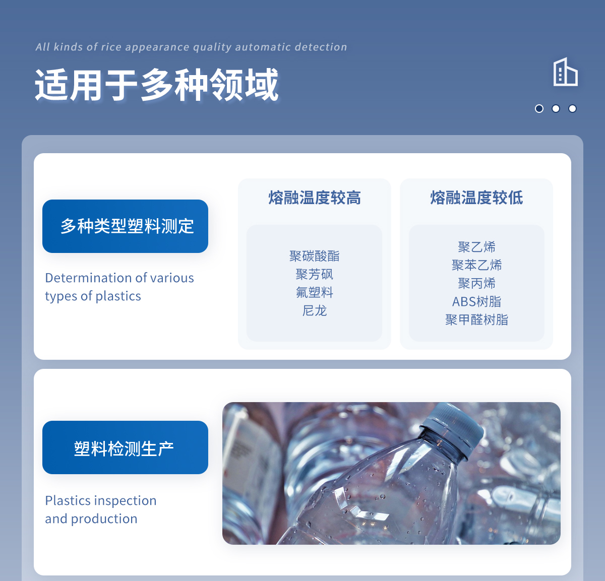 本儀器是用來測定各種高聚物在粘流狀態(tài)時熔體流動速率,它既適用于熔融溫度較高的聚碳酸酯、聚芳砜、氟塑料、尼龍等工程塑料,也適用聚乙烯、聚苯乙烯、聚丙烯、ABS樹脂、聚甲醛樹脂等熔融溫度較低的塑料測試,廣泛地應(yīng)用于塑料生產(chǎn)、塑料制品、石油化工等行業(yè)以及有關(guān)院校、科研單位和商檢部門。