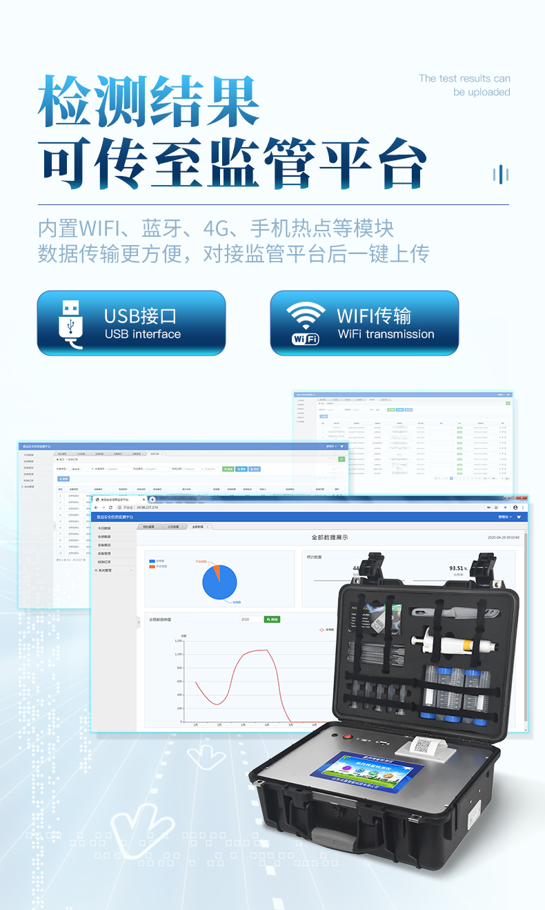 3.☆數據可局域網和互聯網數據上傳,可構建食品安全監管系統平臺,支持LIMS 系統,內置USB接口,可擴展外設;