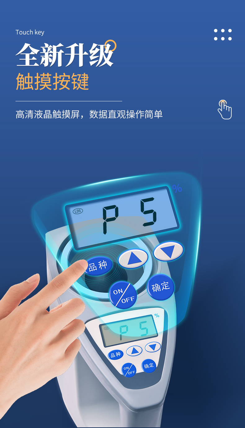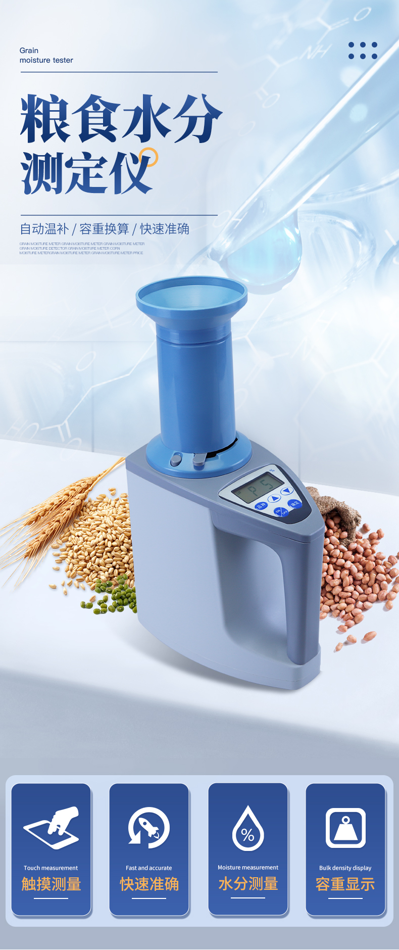 操作簡單:20個(gè)常見品種已預(yù)先定標(biāo),不需秤樣、用料簡取樣后可立即測量水分