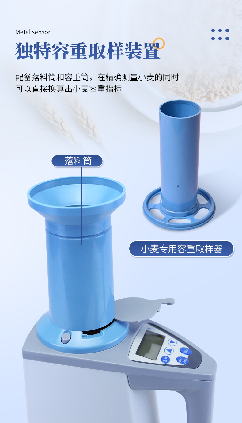 容重?fù)Q算:獨(dú)特的專利容重取樣裝置在**測量小麥的同時(shí),可以直接換算出小麥容重指標(biāo)。