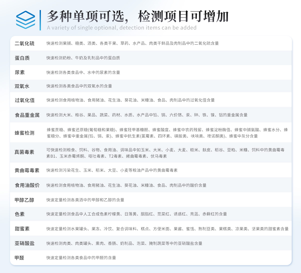 6、內置新國家限量標準,與所測結果進行現場比對,并持續更新標準。