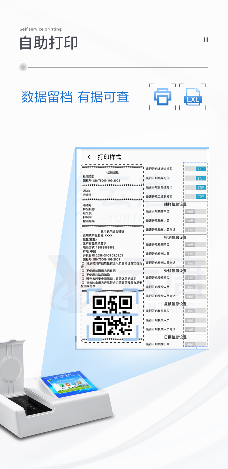 4、 配備嵌入式熱敏打印機,可選擇手動打印或者自動打印,三分鐘出打印結果。
