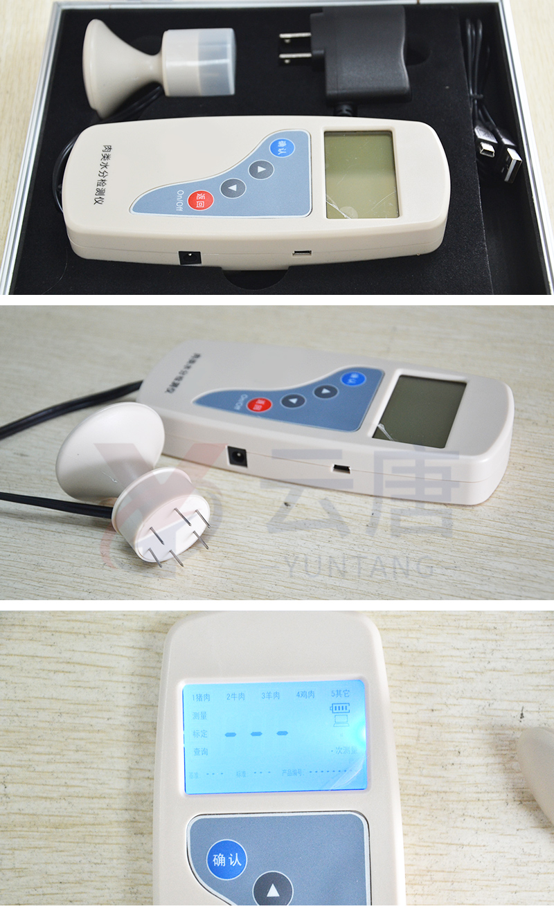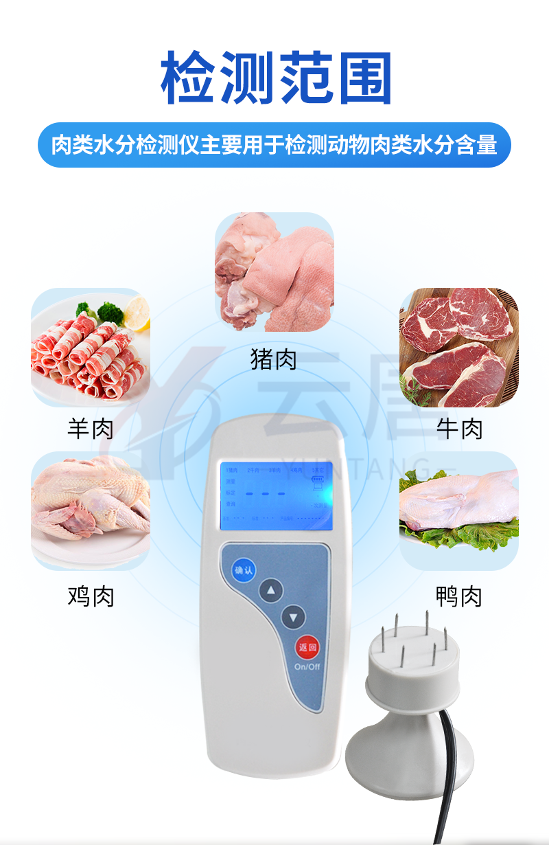 肉類水分檢測儀主要用于快速豬肉、牛肉、雞肉等動物肉類水分含量,從而判斷所測樣品是否為注水肉,該儀器設計精巧,單手可持,儀器可根據測定對象的品種,設定相應的判斷標準值。
