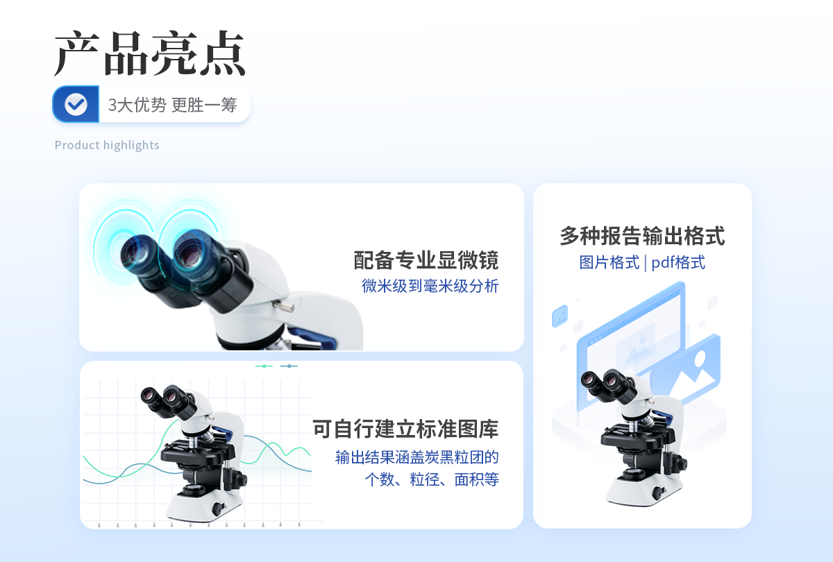 1. 采用專業圖像分析法由計算機完成炭黑分散度等級的判定,檢測精度高; | 2. 對目標炭黑粒徑可從微米級到毫米級進行分析; | 3. 配備專業顯微鏡,配以500萬CMOS圖像傳輸器; | 4. 可單張保存圖像,圖像大小由640*480,1024*768,1280*1024,2592*1944四種大小可供選擇; | 5. 豐富的圖像處理功能,滿足多種圖像處理需要; | 6. 軟件具有自動和手動兩種方式進行炭黑圖像分割; | 7. 軟件可滿足對局部分析的要求; | 8. 配備測微標尺,可進行像素點尺寸校準,并且軟件具有移動標尺功能,可進行任意兩點距離測量; | 9. 根據橡膠中炭黑種類,建立了由ISO提供的標準圖庫,以滿足客戶的目測對比需求; | 10. 客戶可以自行建立標準圖庫; | 11. 輸出結果涵蓋炭黑粒團的個數、粒徑、面積等,并可以數據報表和excel的形式進行輸出; | 12. 提供圖像灰階分布圖、粒子徑分布圖、粒度分布圖; | 13. 報告結果包括:樣品名、標準名、原始圖像、灰階圖等。報告輸出格式多樣,可以選擇圖片格式或pdf格式進行保存; | 14. 軟件試用各種主流操作系統,與win7/win10/winXP等有很好兼容性; | 15. 采用usb2.0數據接口,可適配多種采集設備(如:攝像頭或數碼相機)。 |