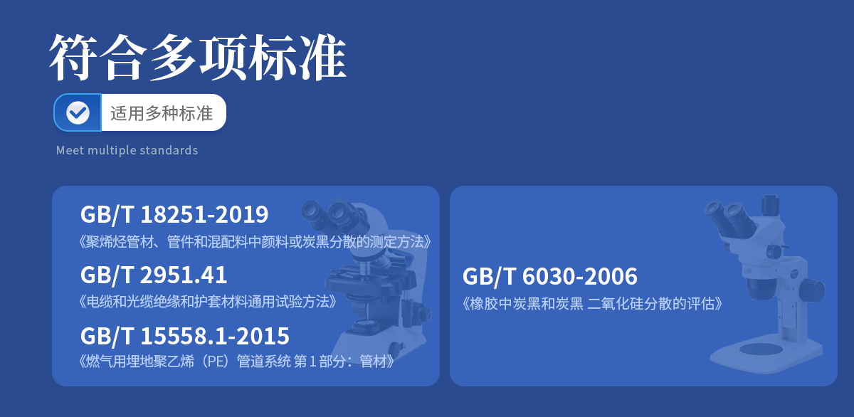 炭黑分散度檢測儀是根據國際標準GB/T 6030-2006 橡膠中炭黑和炭黑二氧化硅分散的評估 快速比較法的檢測儀器。該儀器適配軟件及相應的顯微鏡,通過對炭黑粒團的尺度、形態、及散布情況的測量,可以建立起這些參數與力學性能、抗靜電性能、吸濕性能等宏觀性能指標的內在聯系。對橡膠材料的品質保障、生產工藝、新品研發產生積極影響,同時推進企業和行業技術水平的快速提升。