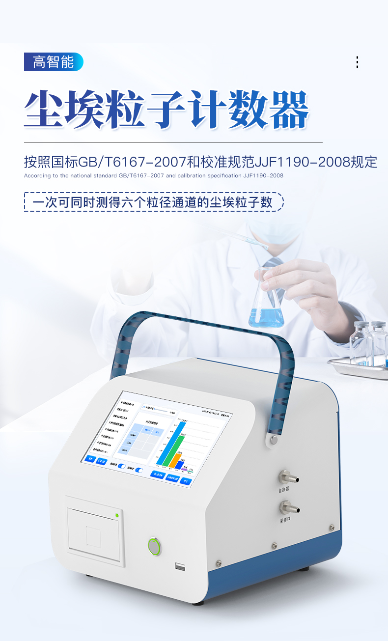 智能塵埃粒子計(jì)數(shù)器,其置信度測量檢定標(biāo)準(zhǔn)按照國標(biāo)GB/T6167-2007和校準(zhǔn)規(guī)范JJF1190-2008規(guī)定的條件,對凈化級別進(jìn)行自動判斷。一次采樣可同時(shí)測得六個(gè)粒徑通道的塵埃粒子數(shù),并同時(shí)顯示六個(gè)粒徑通道粒子的數(shù)目及其變化情況。