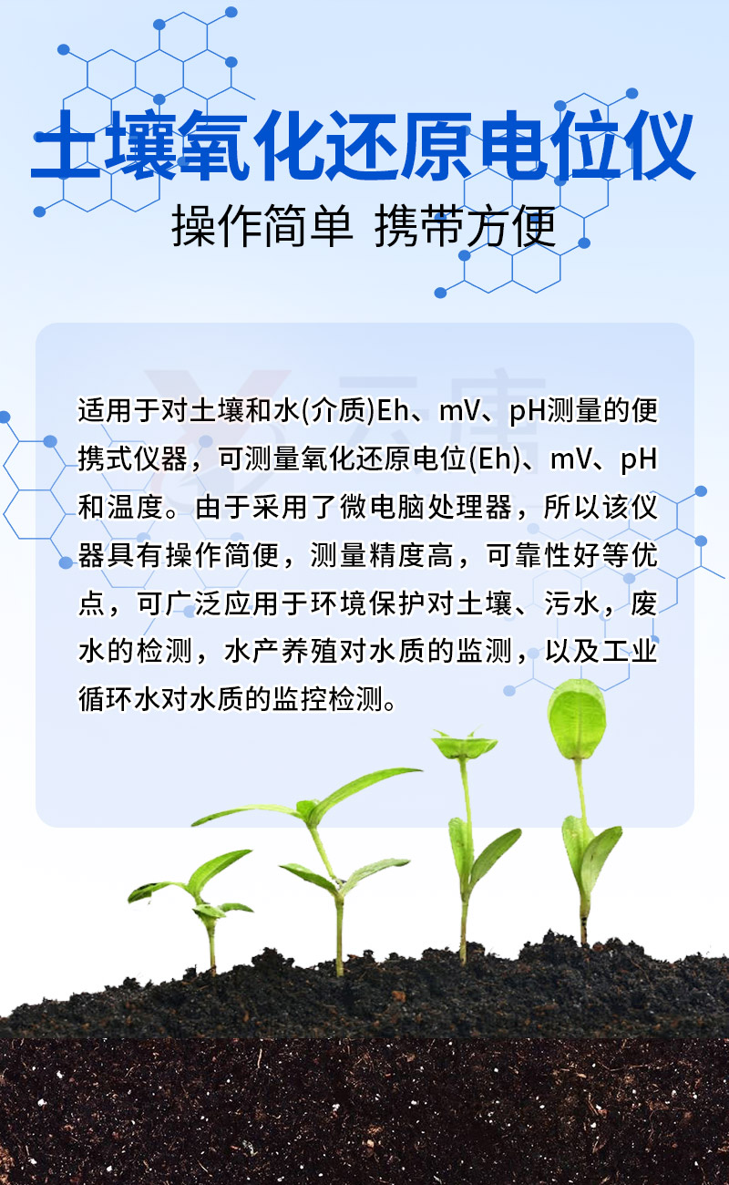 YT-QX6530型智能便攜式氧化還原電位測(cè)定儀是一種適用于對(duì)土壤和水(介質(zhì))Eh、mV、pH測(cè)量的便攜式儀器,可測(cè)量氧化還原電位(Eh)、mV、pH和溫度。由于采用了微電腦處理器,所以該儀器具有操作簡(jiǎn)便,測(cè)量精度高,可靠性好等優(yōu)點(diǎn),可廣泛應(yīng)用于環(huán)境保護(hù)對(duì)土壤、污水,廢水的檢測(cè),水產(chǎn)養(yǎng)殖對(duì)水質(zhì)的監(jiān)測(cè),以及工業(yè)循環(huán)水對(duì)水質(zhì)的監(jiān)控檢測(cè)。