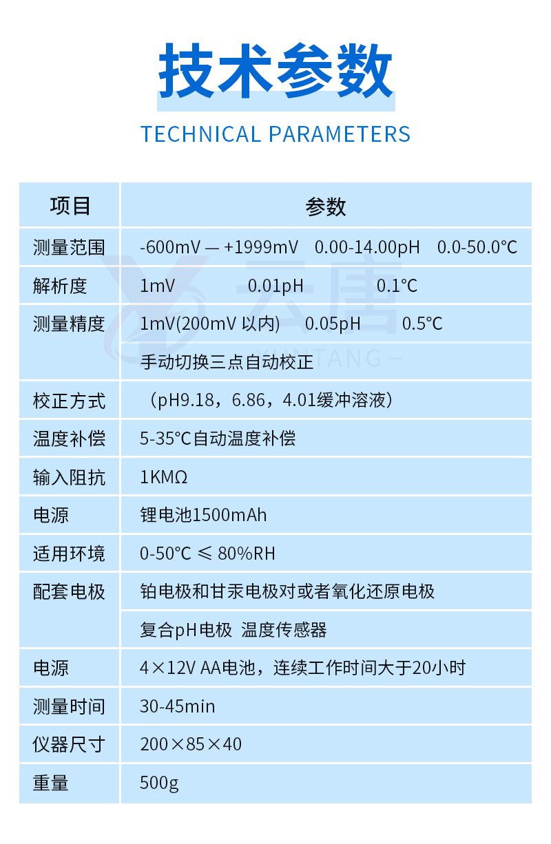 測(cè)量精度:1mV(200mV 以內(nèi)) 0.05pH 0.5℃