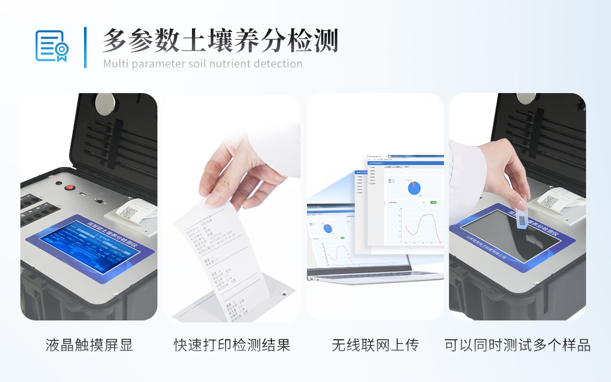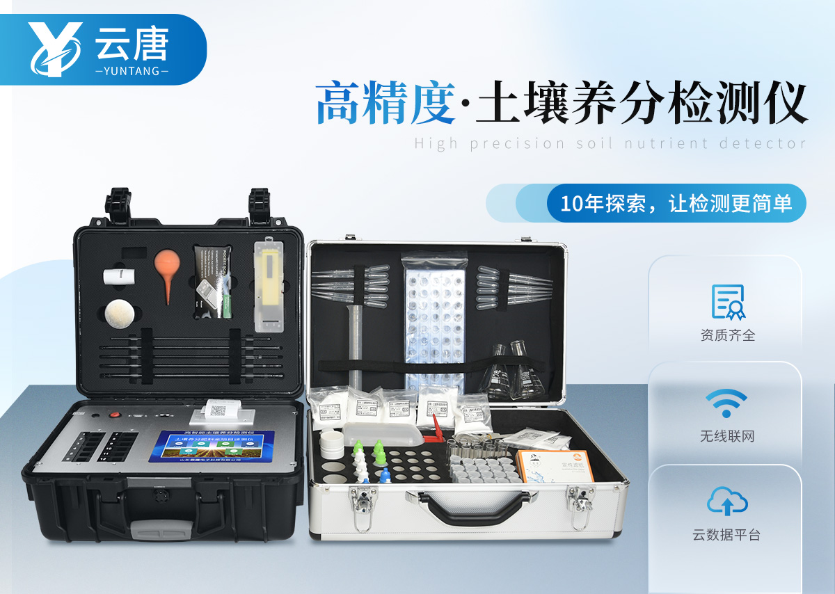 配套齊全:該儀器集藥、器、儀為一體,攜帶方便,相當于一個小型移動實驗室,無需用戶自配附件,亦可靈活野外流動測試。適于農業服務部門或農資經銷商、合作社、肥料廠商、大種植戶測土施肥和鑒別肥料真假。
