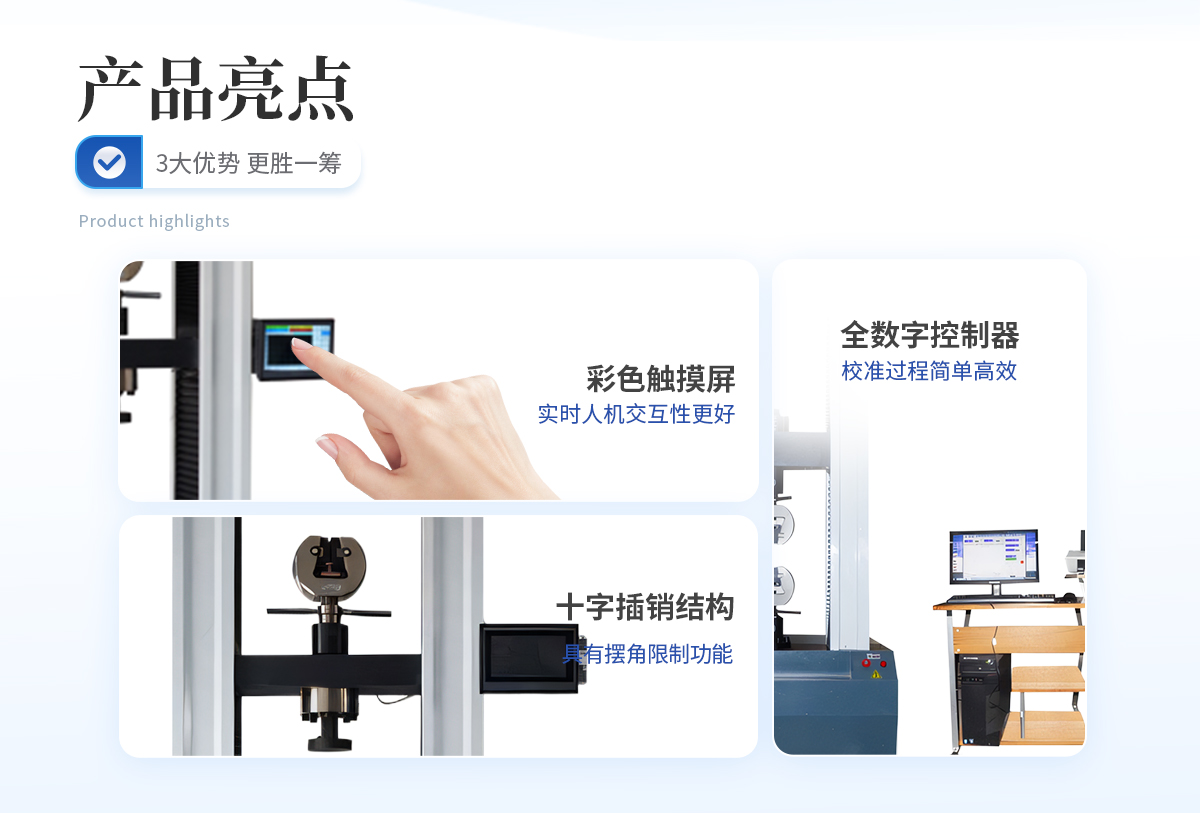 該系列萬(wàn)能試驗(yàn)機(jī)適用于橡膠、塑料、紡織物、防水材料、電線電纜、網(wǎng)繩、金屬絲、金屬棒、金屬板、各種金屬、非金屬及復(fù)合材料的力學(xué)性能指標(biāo)的測(cè)試,如各種拉伸試驗(yàn),通過(guò)更改附具便可輕松完成壓縮、彎曲、剪切、撕裂、剝離、穿刺等試驗(yàn)。7寸TFT彩色觸摸屏,直接輸入試驗(yàn)參數(shù),中英文操作界面層層提示,用戶無(wú)需操作手冊(cè)即可輕松操作。本拉力試驗(yàn)機(jī)具有試驗(yàn)力數(shù)字顯示,試驗(yàn)速度連續(xù)可調(diào),試樣拉斷自動(dòng)停機(jī),峰值保持等功能,試驗(yàn)結(jié)果完全符合國(guó)家相關(guān)標(biāo)準(zhǔn)的要求。