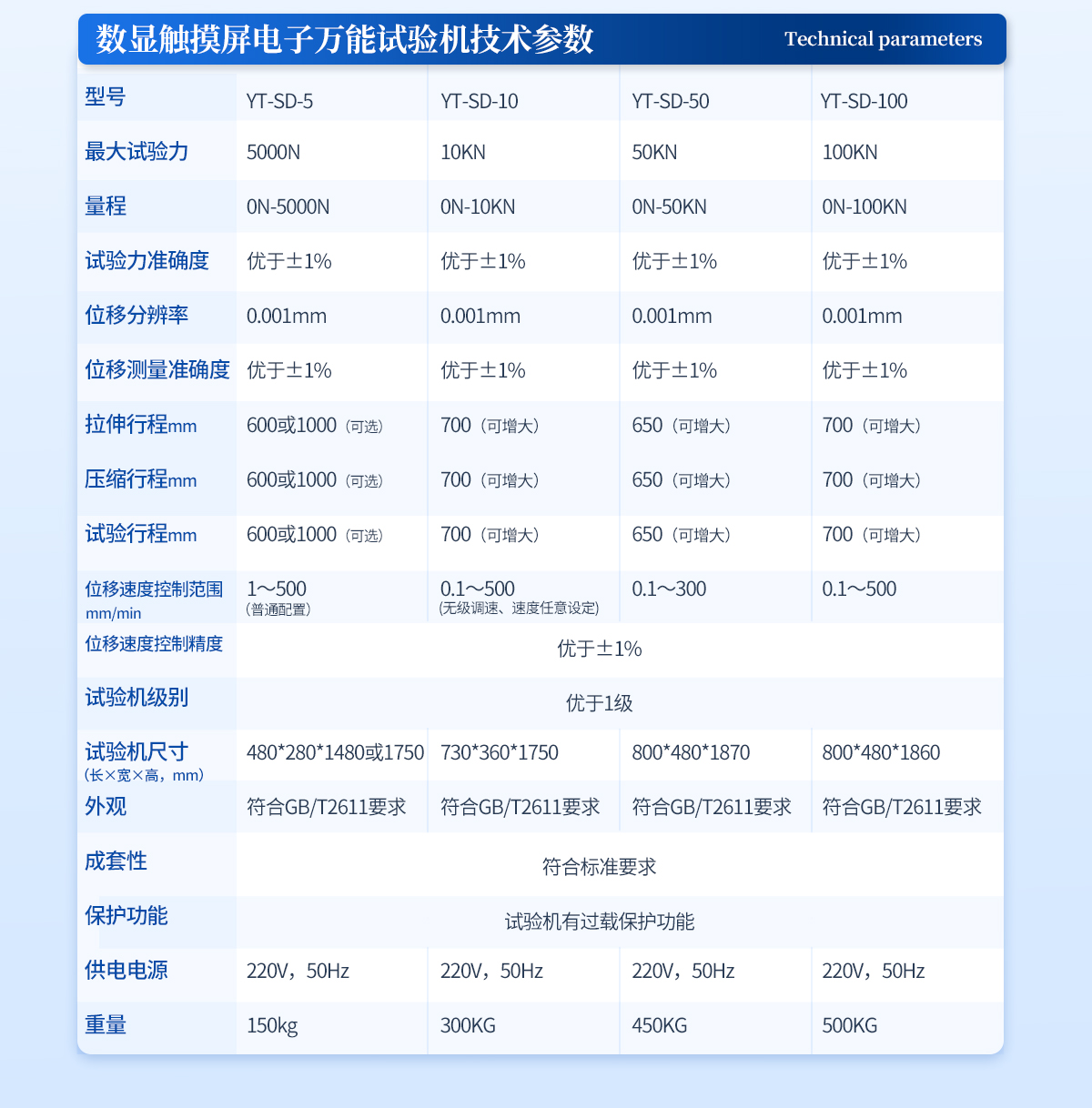 1、**試驗(yàn)力:10KN ; | 2、量 程:0N-10KN; | 3、試驗(yàn)力準(zhǔn)確度;優(yōu)于±1%,(試驗(yàn)力全程不分檔,全程分辨率不變) | 4、位移分辨率:0.001mm; | 5、位移測(cè)量準(zhǔn)確度:優(yōu)于±1%; | 6、拉伸行程:700mm(可增大) | 7、壓縮行程:700mm(可增大) | 8、試驗(yàn)行程:700mm(可增大) | 9、位移速度控制范圍: 0.1mm/min~500mm/min(無(wú)級(jí)調(diào)速、速度任意設(shè)定) | 10、位移速度控制精度:優(yōu)于±1%; | 11、試驗(yàn)機(jī)級(jí)別:優(yōu)于1級(jí) | 12、試驗(yàn)機(jī)尺寸:730*360*1750 mm | 13、外觀:符合GB/T2611要求 | 14、成套性:符合標(biāo)準(zhǔn)要求 | 15、保護(hù)功能:試驗(yàn)機(jī)有過(guò)載保護(hù)功能 | 16、供電電源:220V,50Hz | 17、重量:300KG |