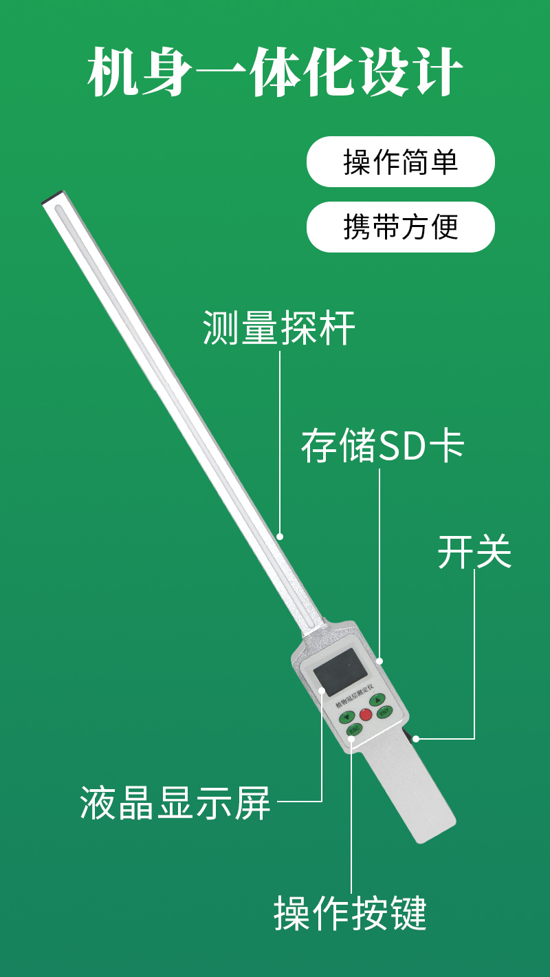 魚眼鏡頭可以伸入至冠層中:鏡頭安裝在搖臂一端,由于小巧和帶有測量桿,可以方便地水平向前或垂直向上伸入到冠層不同高度處,快速地進(jìn)行分層測量,測出群體內(nèi)光透過率和